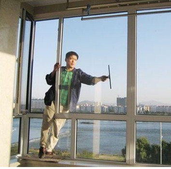 3、擦玻璃:先用毛巾把玻璃框擦拭干凈,再用涂水器沾稀釋后的玻璃水溶液,均勻的從上到下涂抹玻璃,有頑固的污漬用鏟刀清除干凈,再重復(fù)以上工序后用刮子從上到下刮干凈,用干毛巾擦凈框上留下的水痕,玻璃上的水痕用機(jī)皮擦拭干凈。